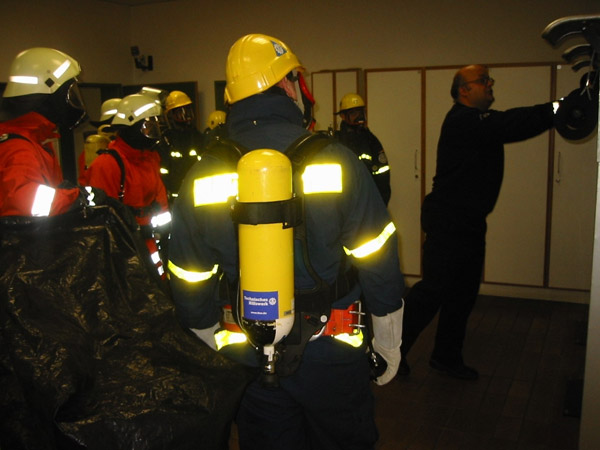 7 Helfer unseres OV´s legten am 15.11.2003 gemeinsam mit Mitgliedern der Feuerwehr Müllheim und Neuenburg ihre Prüfung zum Atemschutzgeräteträger nach Fwdv 7 ab. An insgesamt vier Ausbildungstagen unter Leitung zweier Ausbilder der FFW Müllheim und Neuenburg wurden die Helfer in Theorie und Praxis auf die Prüfung vorbereitet. Angefangen mit einfachen Gewöhnungsübungen unter Atemschutz und der Ausbildung in Brandbekämpfungstechniken mussten die Helfer am vorletzten Ausbildungstag bis an ihre Belastungsgrenzen gehen, um für spätere Einsatze vorbereitet zu sein. Am Prüfungstag mussten sogenannte Trupps mit jeweils zwei Helfern vorgegebene Aufgaben auf der zuvor verdunkelten Übungsstecke in Hochdorf erledigen. Die Aufgaben wie z.B. Personensuche und das Wechseln von defekten Rohrstücken wurden allesamt erfolgreich durchgeführt. Vor dem praktischen Teil mussten die 12 Helfer beider Organisationen einen schriftlichen Test mit atemschutzspezifischem Inhalt ablegen, der von allen Prüflingen ebenso wie die darauffolgende prakische Prüfung erfolgreich bestanden wurde.