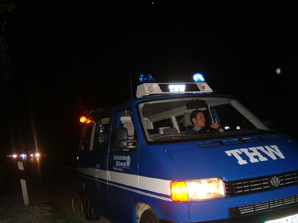 mit Hilfe der Warnblinkanlage und des Blaulichts den kommenden Verkehr. Nachdem sich gegen Mitternacht der Stau auflöste, kehrten die Helfer wieder in die Unterkunft zurück.