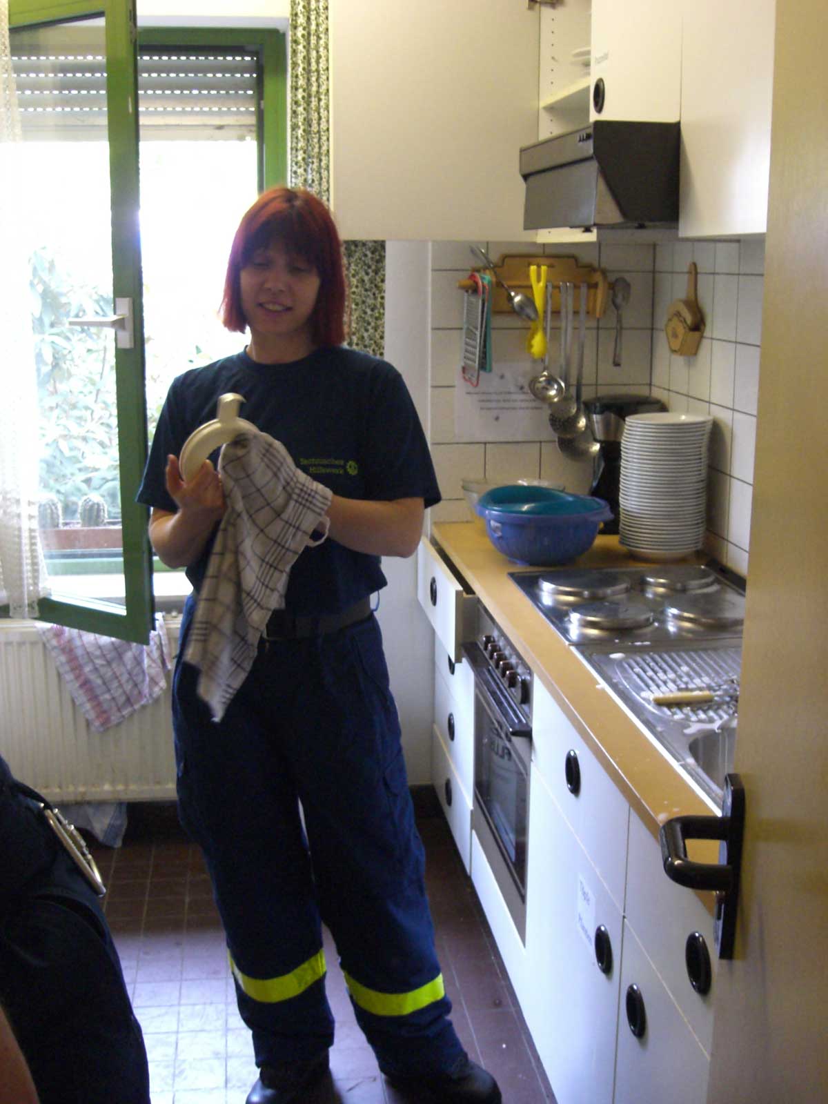 Ein großer Dank von allen Teilnehmenden Prüfern und Prüflingen (insgesamt mehr als 40 Personen aus Müllheim, Breisach, Schopfheim, Freiburg) ging an die OV Köchin Anja Elsässer, die sowohl ein herzhaftes und abwechslungsreiches Frühstück als auch ein wunderbares Mittagessen zubereitete. Die nächste Basisausbildung beginnt im September 2006. Interessierte Mitbürger können sich immer Montags zwischen 19 und 22 Uhr in der Müllheimer THW Unterkunft unter der Telefonnummer 07631/13231 informieren.