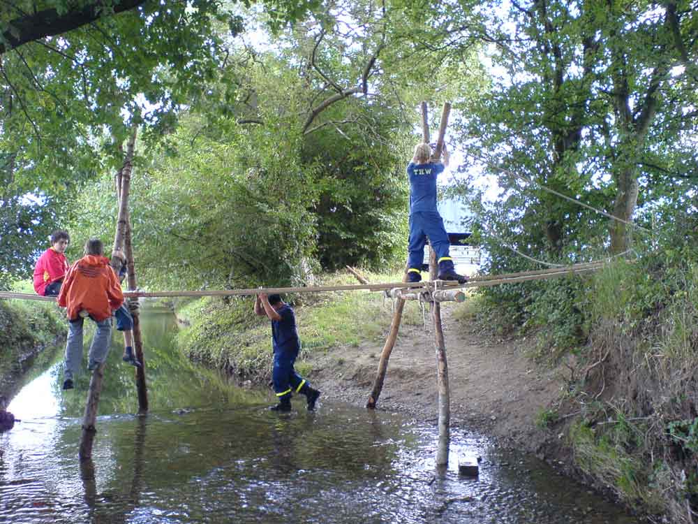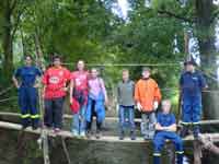 Trotz des schlechten Wetters fanden am 12. August fünf mutige Jugendliche den Weg ins THW OV Müllheim, um im Rahmen des Sommerferienprogramms einen China-Behelfssteg über die Runs nahe Zienken zu bauen.