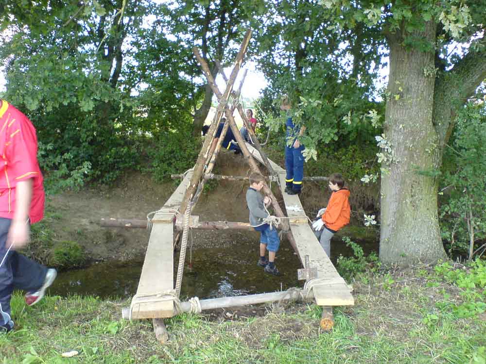 Unter der fachkundigen Anleitung der beiden Jugendbetreuer, sowie zweier Junghelfer, gelang dies ohne Probleme. Die Teilnehmer überraschten dabei mit großem Geschick, rascher Auffassungsgabe und flinkem Bauen, sodass es kein Wunder war, dass das Wetter die gesamte Bauzeit über hielt.