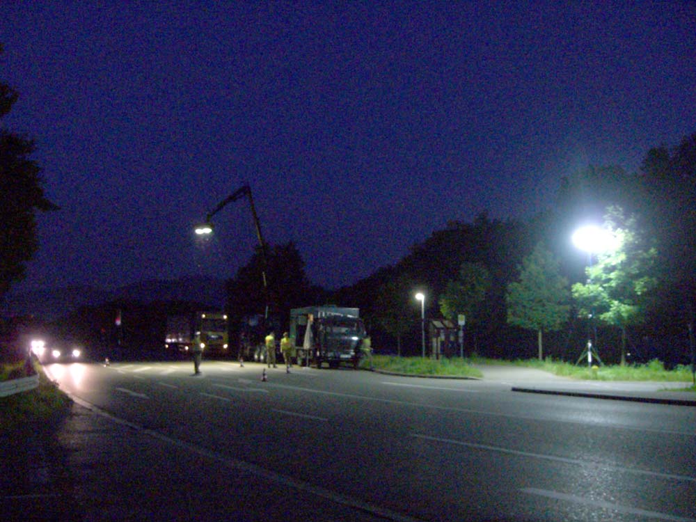 In der Nacht vom 12. auf den 13. Juni wurde das THW MÜllheim zur Fahrzeugkontrolle anlässlich der Fußballweltmeisterschaft gerufen. Die Bundepolizei hatte am Grenzübergang in Neuenburg nach Frankreich eine Kontrollstelle aufgebaut. In der Zeit von 19 bis 6 Uhr morgens wurde die Einsatzstelle von fünf Helfern des Müllheimer THW Ortsverbandes ausgeleuchtet. Mit dem soganannten Powermoon und der Lichttraverse am Beladekran der Sattelzugmaschine wurde weiträumig und tagfell ausgeleuchtet. Das THW ist ein verlässlicher Partner für Behörden und andere Organisationen bei nächtlichen Beleuchtungsaktionen.