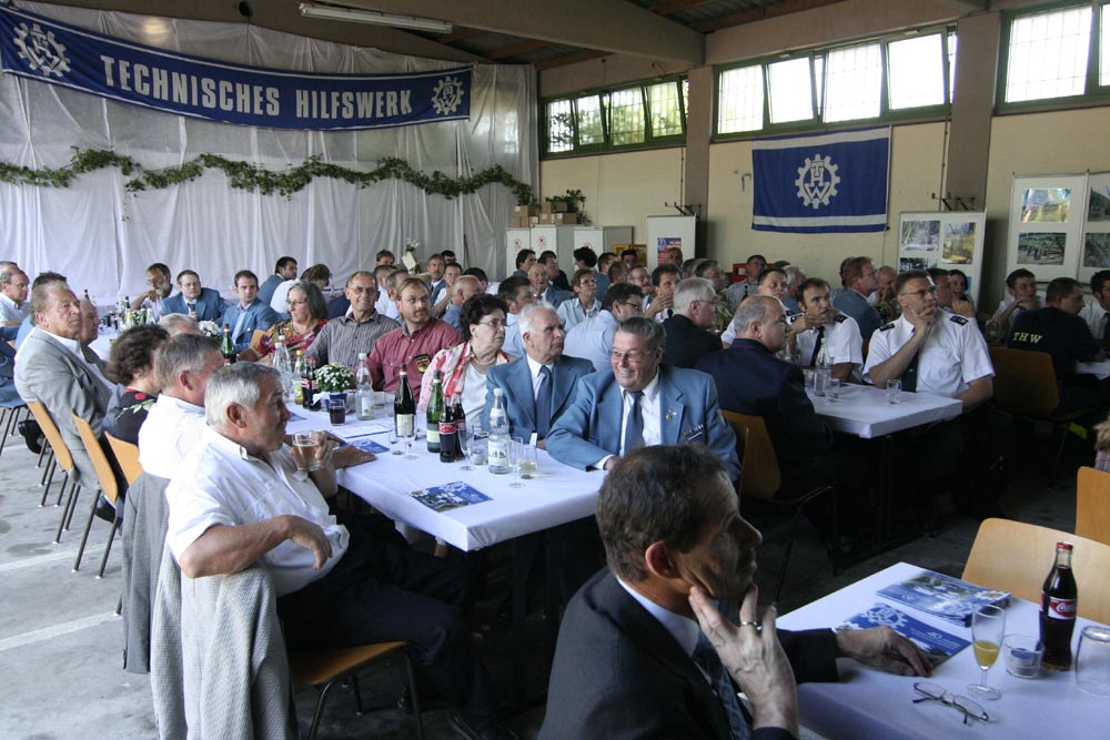Es begann alles mit dem Bau einer Holzbrücke in Müllheim. Das war 1967 die Initialzündung für die Gründung des Müllheimer Ortsverbandes. 40 Jahre später konnten die damaligen und heutigen Helfer beim Festakt auf eine Erfolgsgeschichte zurückblicken. Einen kleinen Ausschnitt aus der Geschichte stellte der heutige Ortsbeauftragte, Patrick Winterhalter, den Festgästen vor. 23 freiwillige Helfer gründeten den Ortsverband, dem Wolfgang Ertel 25 Jahre lang als Ortsbeauftragter vorstand. Was 1967 mit bescheidenen Schritten begonnen hatte, fand bereits beim Zugunglück im Jahr 1971 einen ersten Höhepunkt. Im Laufe der Jahre reihten sich zahlreiche kleine und größere Einsätze aneinander. Seit vielen Jahren macht vor allen Dingen die Fachgruppe Brückenbau bundesweit und international von sich Reden. So bauten die Helfer Anfang der 90er Jahre auf Anforderung der UNHCR in Somalia zunächst eine Hängebrücke und kurz darauf eine fünfzig Meter lange Bailey Brücke für die Flüchtlingsströme. Sowohl nach Hurrikan Mitsch 1998 als auch beim Elbehochwasser 2002 wurden mehrere Brücken errichtet. Die Hilfseinsätze in Afrika, Lateinamerika und im Erzgebirge waren die Höhepunkte einer schier nicht endenden Arbeitsliste. Mit einer Spannweite von 120 Metern war allerdings die Brücke bei Vaihingen das größte Bauwerk der Müllheimer Helfer. Am längsten stand die Brücke, die bei Lörrach die Wiese überspannte: Sie wurde 1969 errichtet und erst nach über 25 Jahren durch ein reguläres Brückenbauwerk ersetzt. „Das ist eine beeindruckende Bilanz“, stellte der THW-Landesbeauftragte Dirk Göbel fest. Den Erfolg machen die Menschen aus, die den Ortsverband gegründet und bis heute geführt haben. Einst als Zivilschutzeinheit eines Nachkriegsdeutschlands im kalten Krieg aufgestellt, habe sich der eigentliche Auftrag hin zu einer Katastrophenschutz und Hilfsorganisation gewandelt, betonte Göbel. In Zeiten des fortschreitenden Klimawandels müsse sich die Bevölkerung wie auch das THW auf neue Herausforderungen einstellen, verwies der Landesbeauftragte auf den ständigen Wandel innerhalb der Organisation. Gemeinsam mit den Feuerwehren und dem Deutschen Roten Kreuz sei das THW eine der tragenden Organisationen zur Abwehr von Gefahren. „Wir alle sind ein Teil unseres Staates. Deshalb tut es gut, wenn auch junge Menschen in eine solche Verantwortung treten“, würdigte Göbel das Engagement der heutigen Helfer und die Jugendarbeit des Müllheimer Ortsverbandes, die ebenfalls seit 30 Jahren kontinuierlich fortgeführt wird. „Diese Freiwilligkeit kann nicht verordnet werden, sondern erwächst aus eigener Motivation“, bedankte sich Müllheims Bürgermeister Lohs für die Einsatzbereitschaft. „Wir haben mit dem THW einen starken Partner“, unterstrich der Kreisbrandmeister die gute Zusammenarbeit mit den Feuerwehren. Nicht hoch genug könne dieses ehrenamtliche Engagement eingeschätzt werden, betonte Landtagsabgeordneter Christoph Bayer.