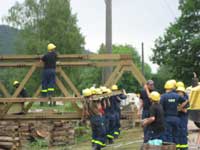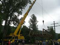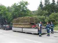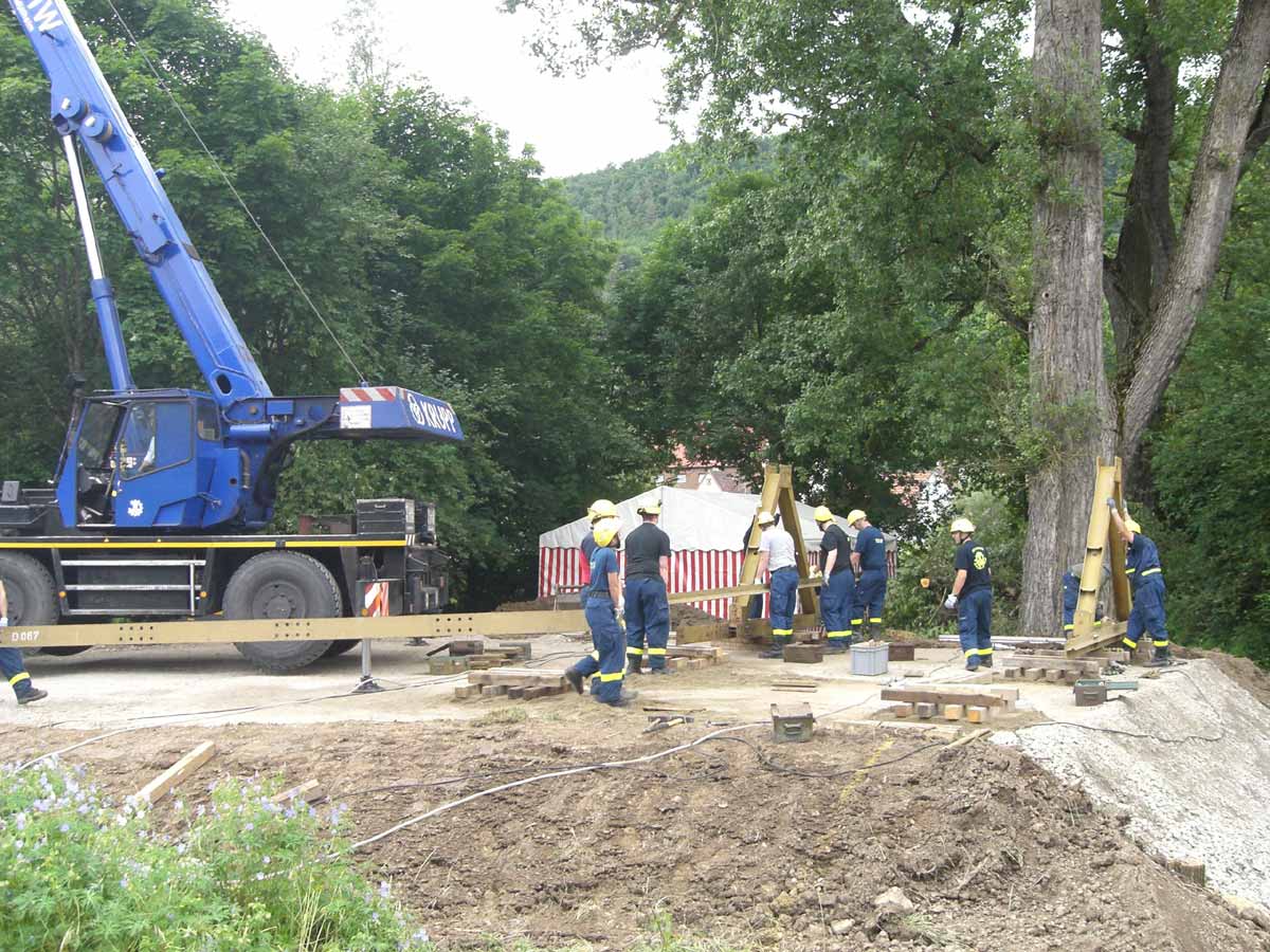 transportierten die THW-eigenen LKW. Um das gesamte Teil hernach auf die vorbereiteten Widerlager zu hieven, musste allerdings ein größerer Autokran von der Firma Neu aus Rottenburg kommen.