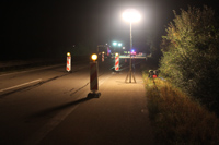 Beleuchtung der Ausleitungsstelle an der B3 in Höhe Freiburg Süd, durch Kräfte des THW Müllheim.