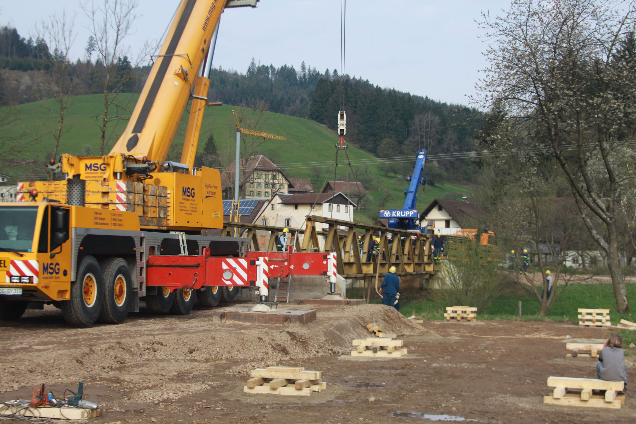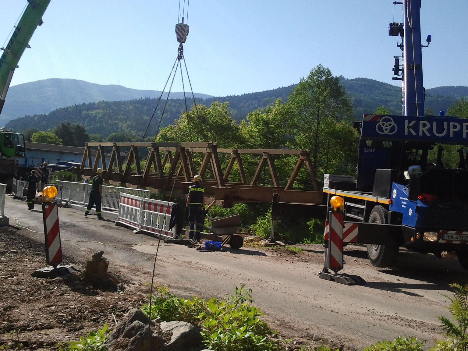 Die Behelfsbrücke war damals kurzfristig notwendig geworden, da aufgrund einer Brückenkontrolle die eigentliche Straßenbrücke umgehend gesperrt werden musste und keine ausreichende Zufahrt zu Wirtschafts- und Landwirtschaftsbetrieben mehr bestand.