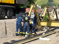 Nachdem bereits im Jahre 2011 der Aufbau einer Behelfsbrücke erfolgreich beübt wurde, stand im Mai 2012 der Abbau zweier Behelfsbrücken in Niederwinden bzw. Elzach an. Dies ist umso wichtiger um im Einsatzfall ausreichend ausgebildete und eingewiesene Einsatzkräfte zu haben.