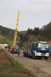 An Ausruhen war für die ehrenamtlichen Einsatzkräfte aber nicht zu denken, da am vergangenen Wochenende bereits der Rückbau einer weiteren Behelfsbrücke anstand. Dieses Mal in Elzach, mit einer freien Stützweite von 21,35 Metern, sowie ca. 7 Meter Anrampungen.